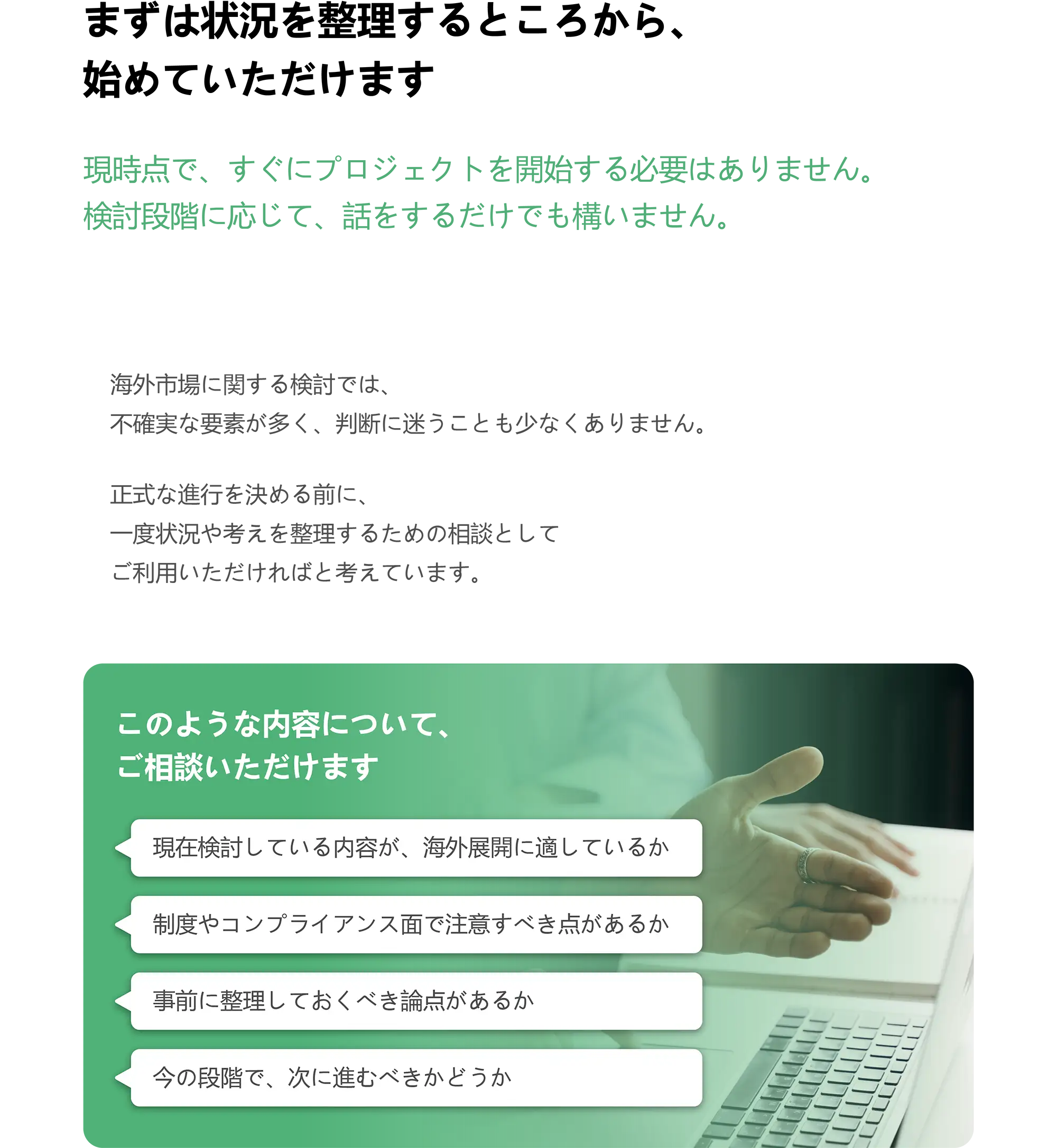 一度きりの相談でも構いません。 必要なときに、必要な内容だけ相談できる存在でありたいと考えています。